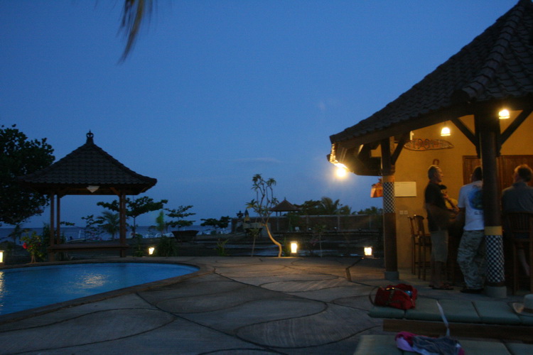 Enjoy Asian and Western cuisine in our Café Garam, served by very friendly and attentive Balinese staff, have a drink at our Amed Salt Bar while watching the beautiful sunset behind Mount Agung or watch the Champions league, F1, Wimbledon tennis or the news on our large LED TV.